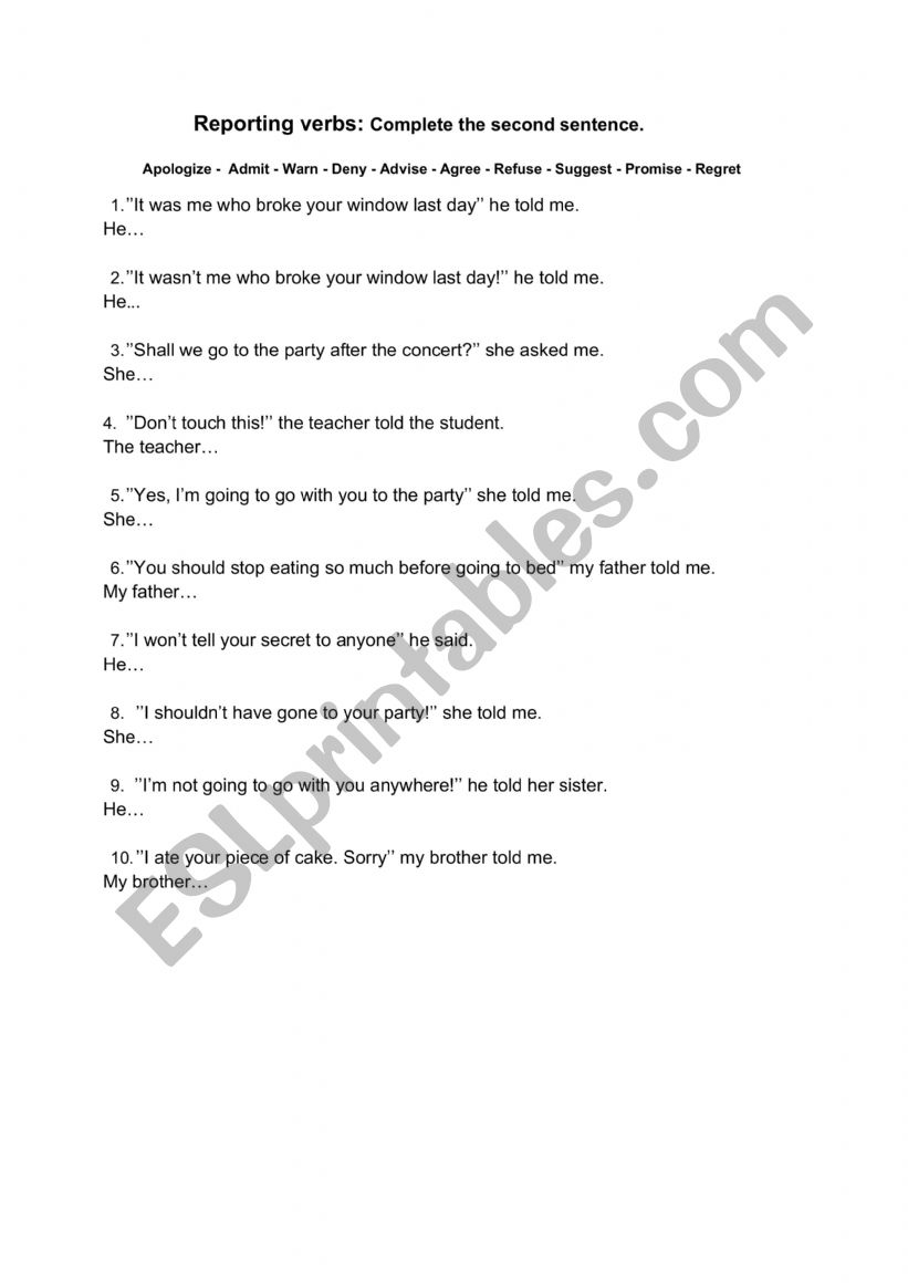 Grammar worksheets > Direct/reported speech > Reporting verbs > Reporting verbs