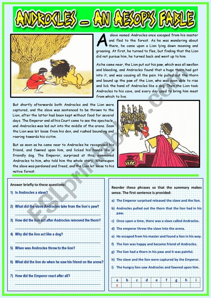 "ANDROCLES AND THE LION" AESOP´S FABLE