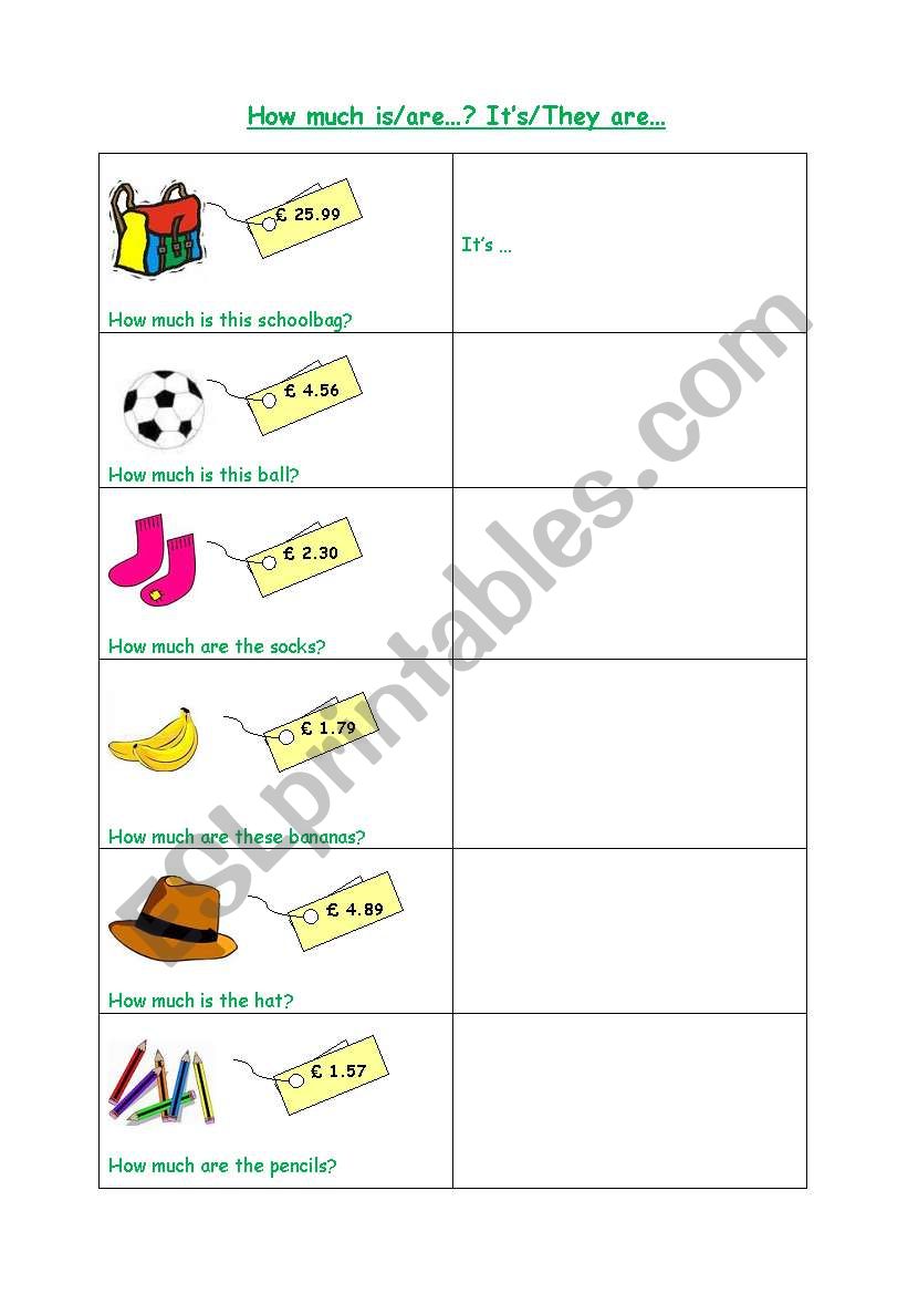 Grammar worksheets > Expressions > How much is it? > How much is it?
