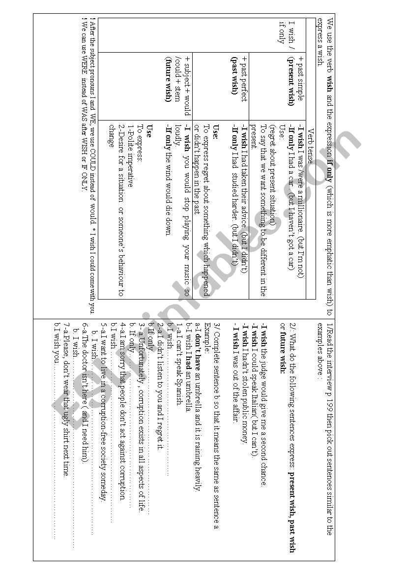 I wish/if only worksheets: