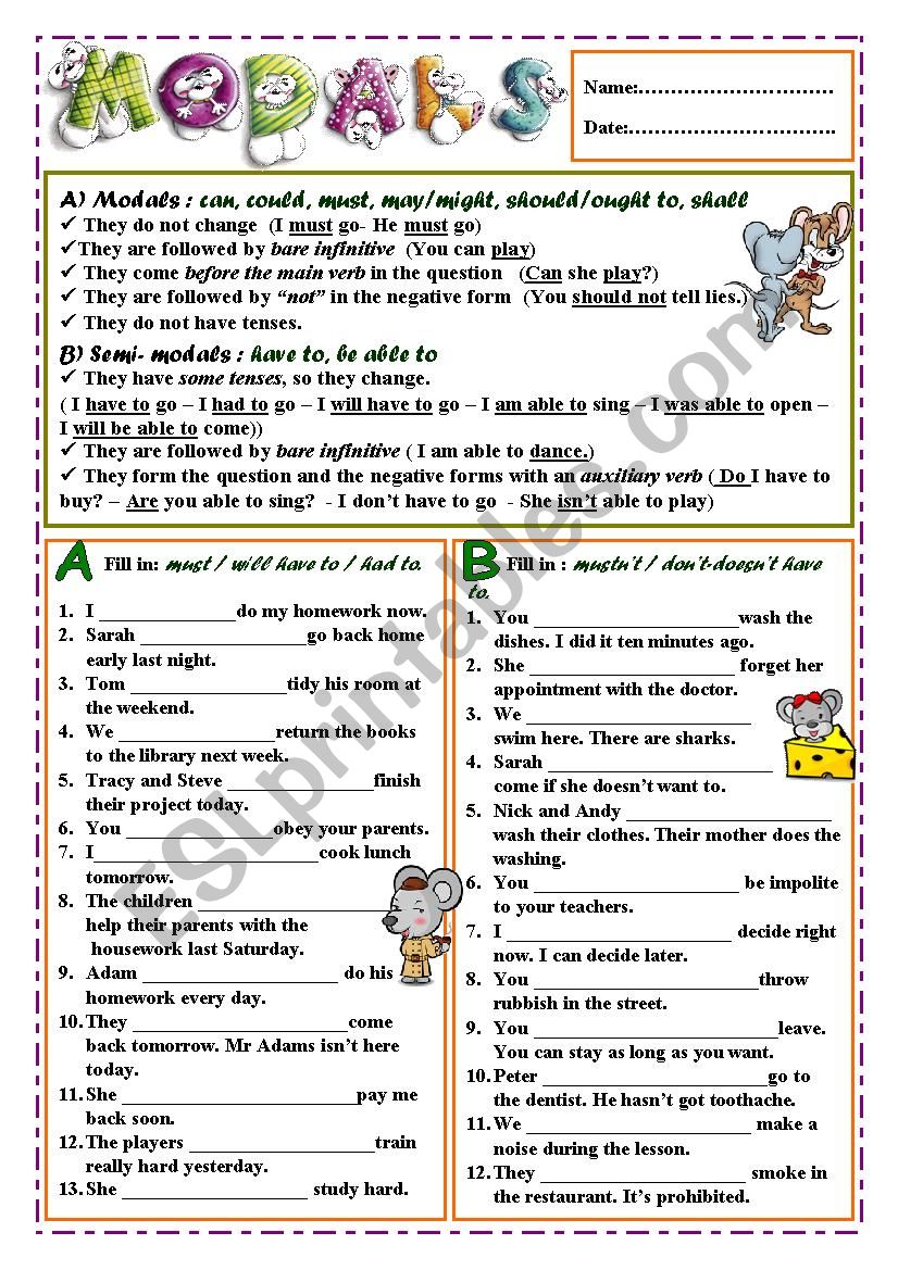 Grammar worksheets > Modal verbs > Modals / Semi-modals