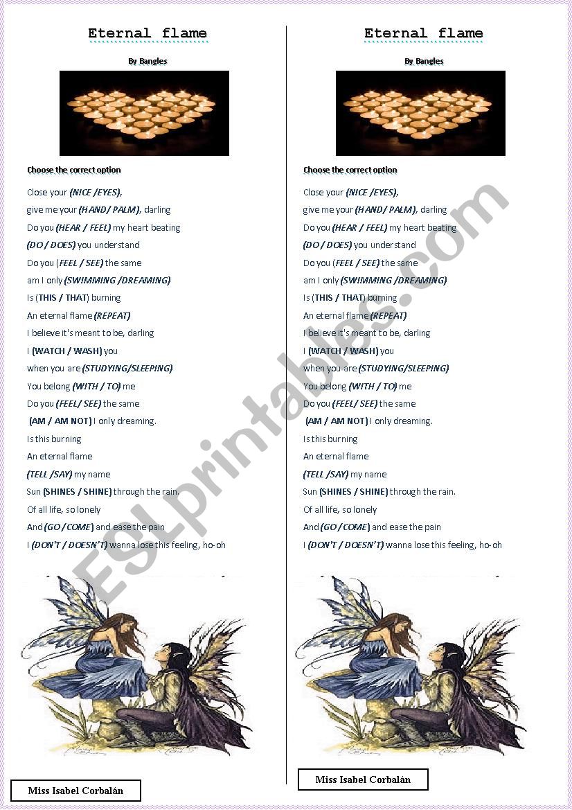 SONG WORKSHEET (ETERNAL FLAME BY THE ATOMIC KITTEN)