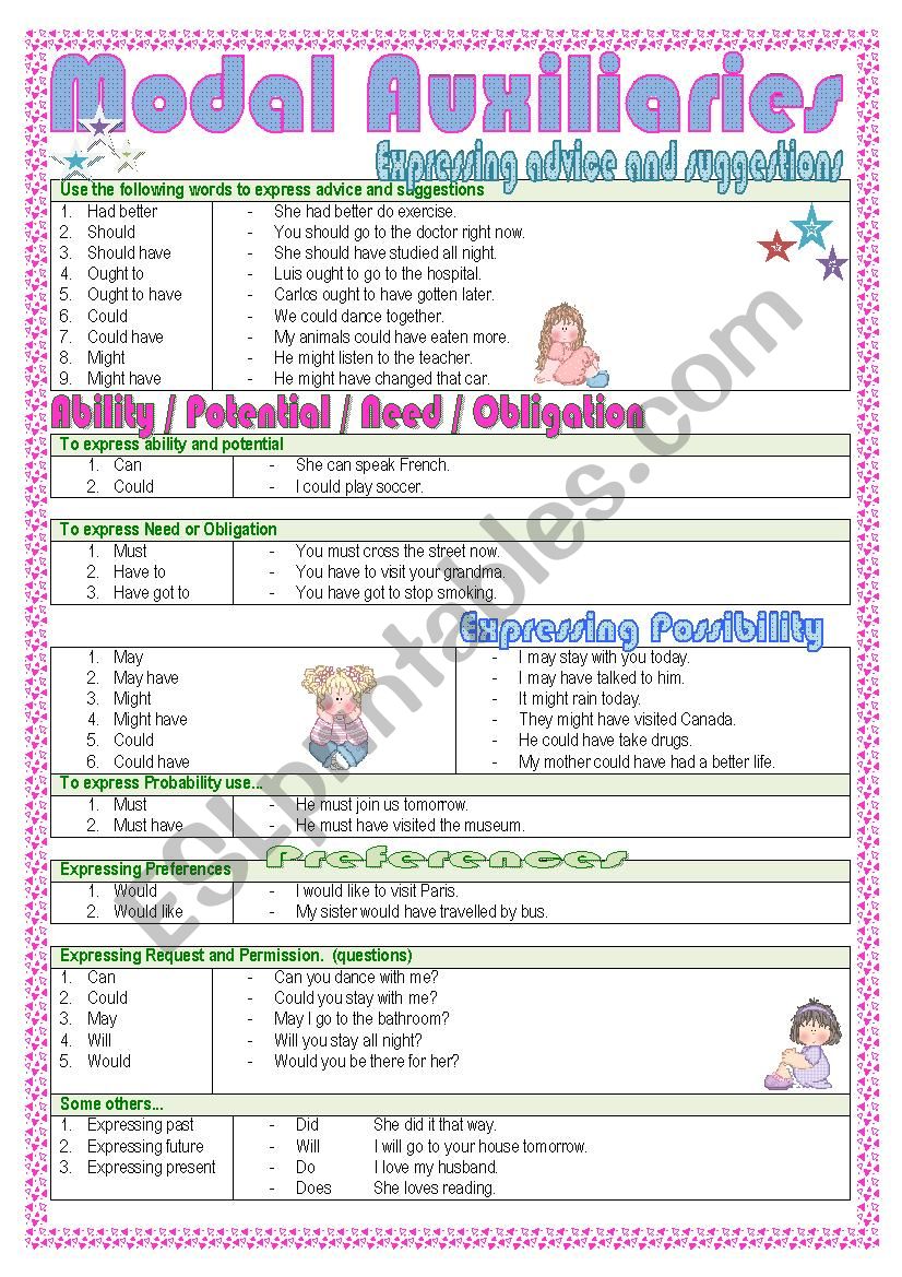 To guide students through the use of modal auxiliaries. Examples. :)