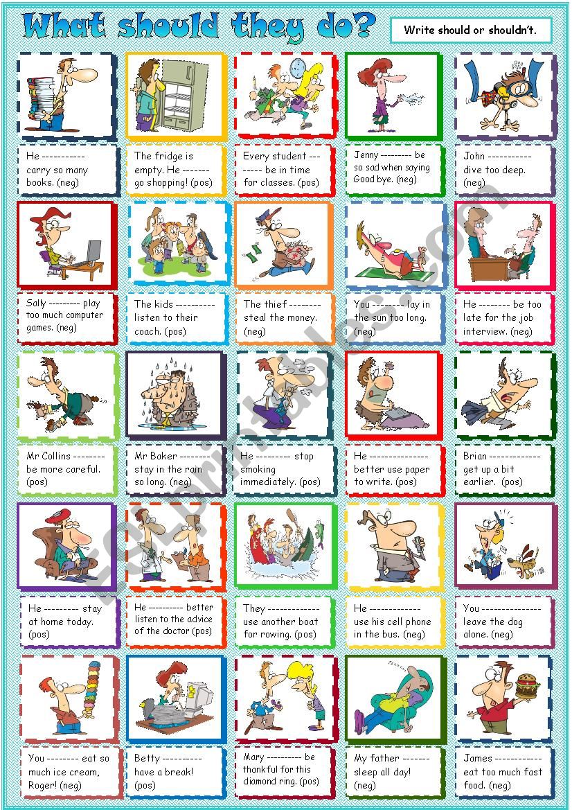 Grammar worksheets > Modal verbs > Should > What should they do?