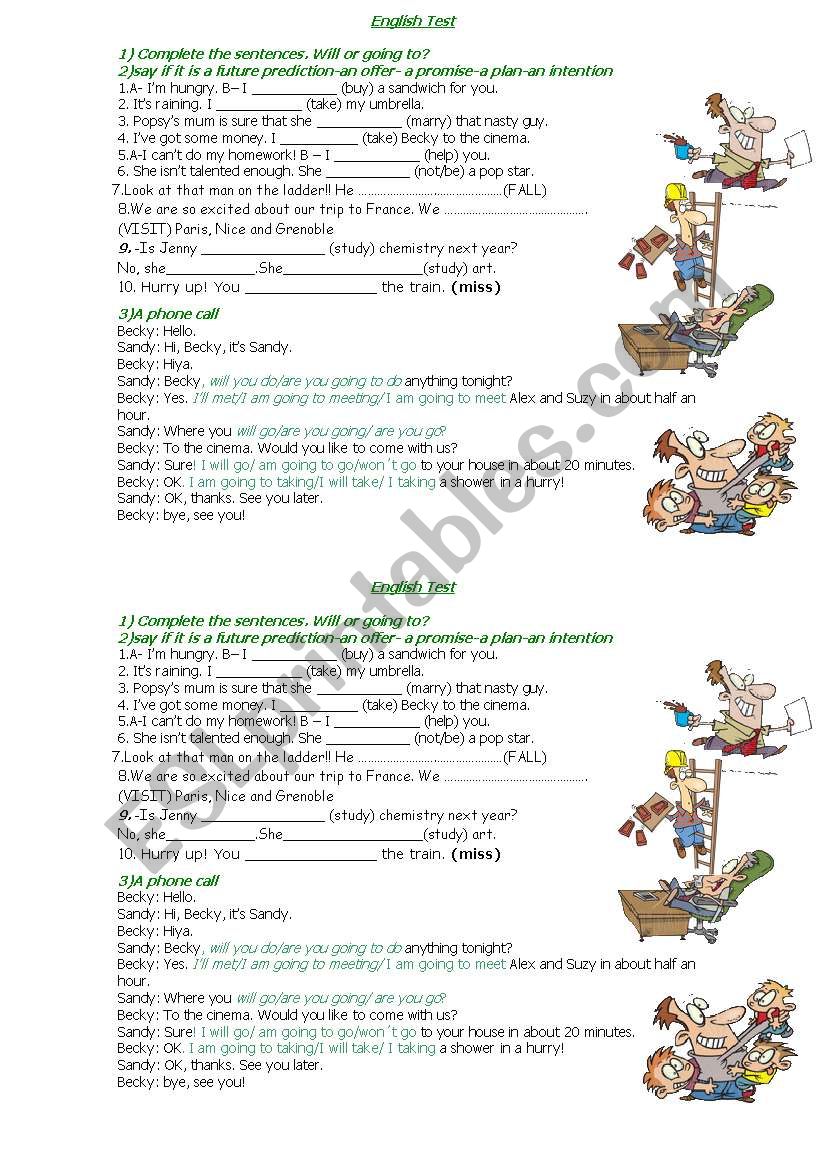 Grammar worksheets > Modal verbs > Will > will vs. going to test