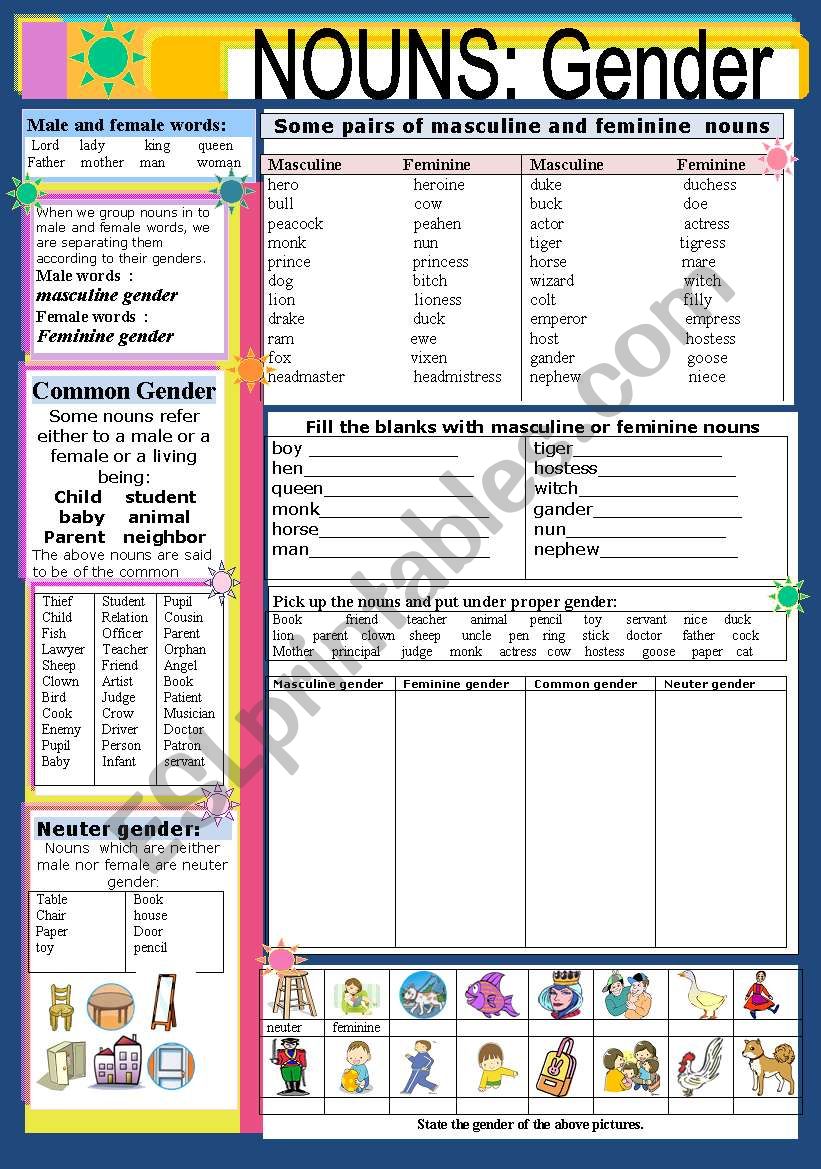 Gender of nouns worksheets: