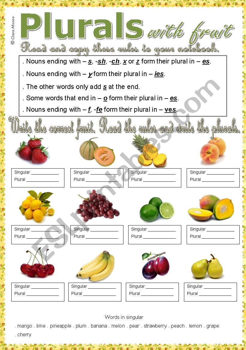 Grammar worksheets > Nouns > Plural of nouns > Plurals with fruit