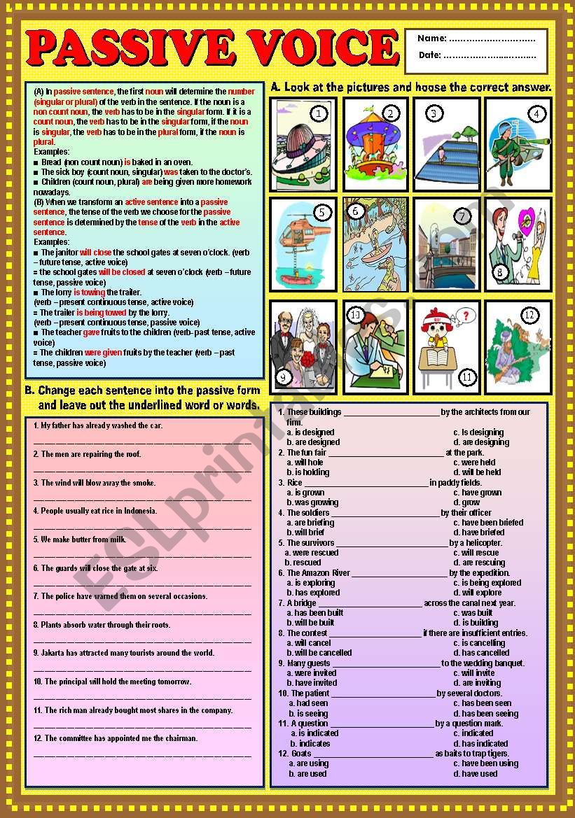 Grammar worksheets > Passive voice > Passive voice + KEY