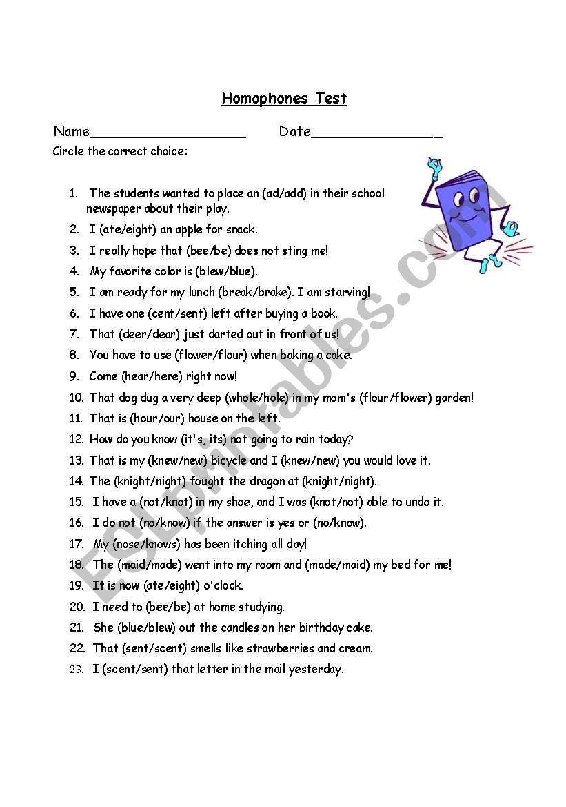 Grammar worksheets > Phonetics > Homophones > Homophones