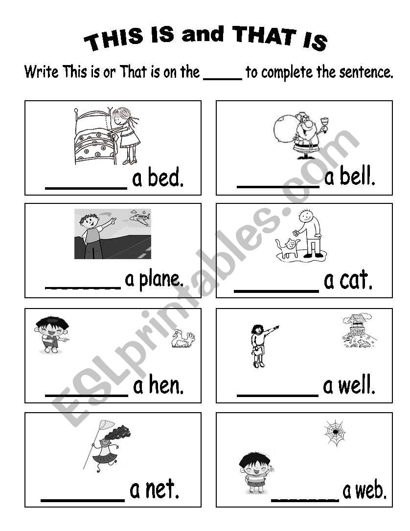 Students will complete the sentence by writing the correct pronoun: this is or that is.