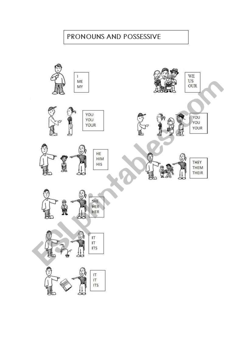 PERSONAL PRONOUNS AND POSSESSIVE ADJECTIVES (B&W VERSION INCLUDED)