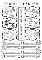 This is part one of my ws on posessives. the second page was too large to upload it together with this page so I had to separate them. This ws contains some grammar points and one short exercise. the secon one contains exercises only. Hope it�s useful. Once again, big hugs for those who leave comments. THAANKS!