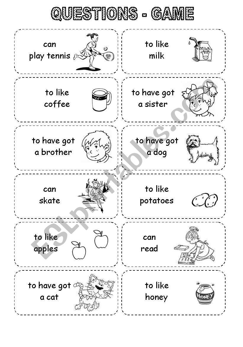I wanted to make the revision of three questions (Do you like? Have you got? Can you?) and short answers more enjoyable for my students. I hope you´ll find the cards useful!
