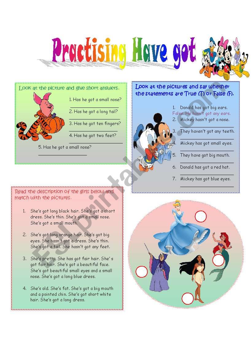 A revised worksheet using disney cartoons. It contains answer the questions, true or false, short descriptions, choose the appropriate answer, make sentences,fill in. Have a nice day