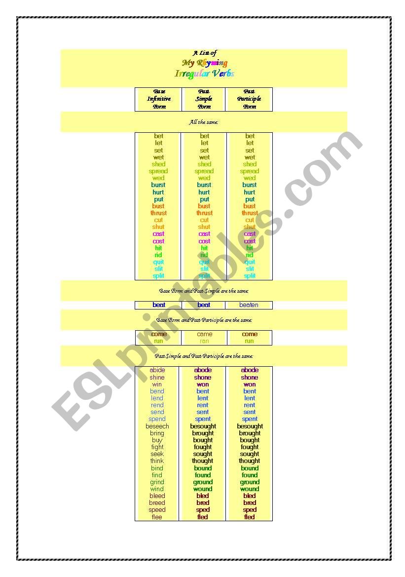 A very useful list of rhyming irregular verbs for easy memorizing..!