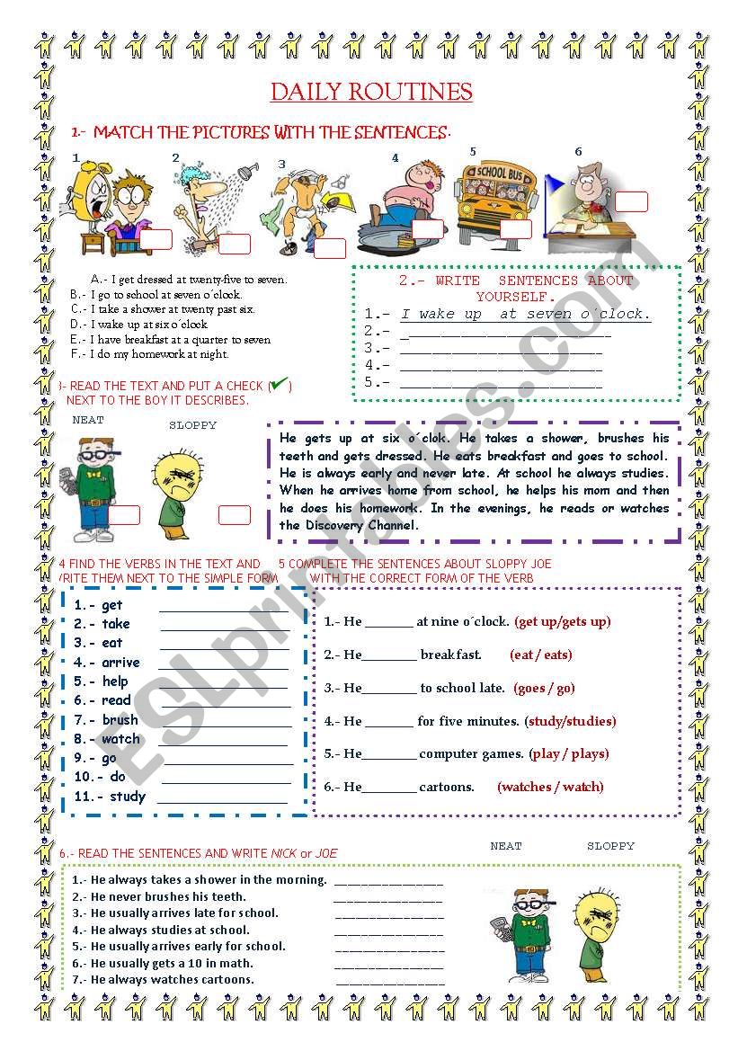 to review the simple present tense and consolidate the use of the verbs when we talk about he and she..... it seems that the names of the boys are not complete the names are NEAT NICK and SLOPPY JOE ....good look ...my best wishes