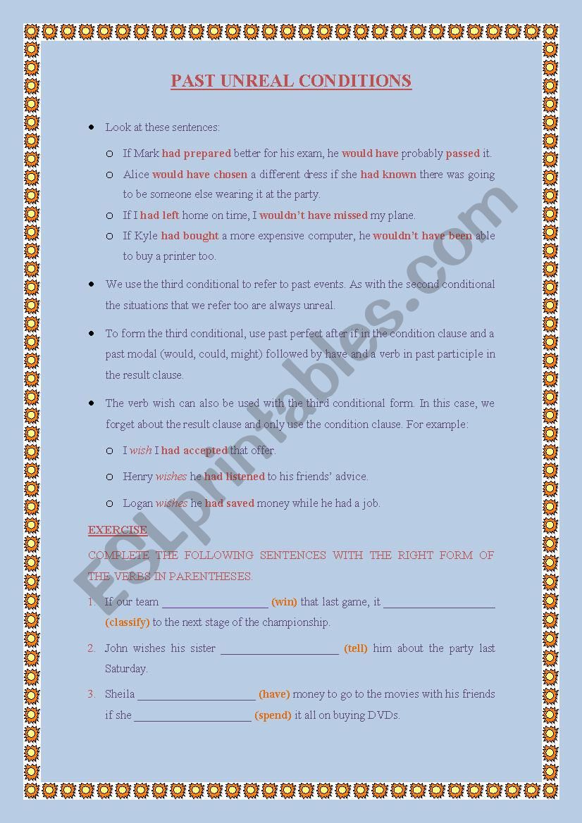 Explanation and practice exertcises on the past unreal conditional and past wishes.