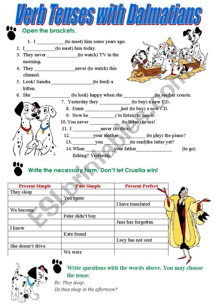 Grammar worksheets > Verbs > Verb tenses > Tenses with Dalmatians