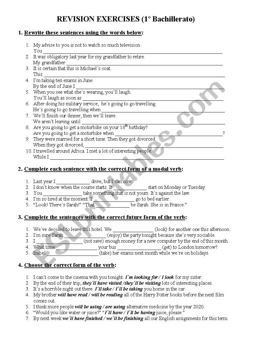 A good worksheet to practise modals, future tense and transformations.