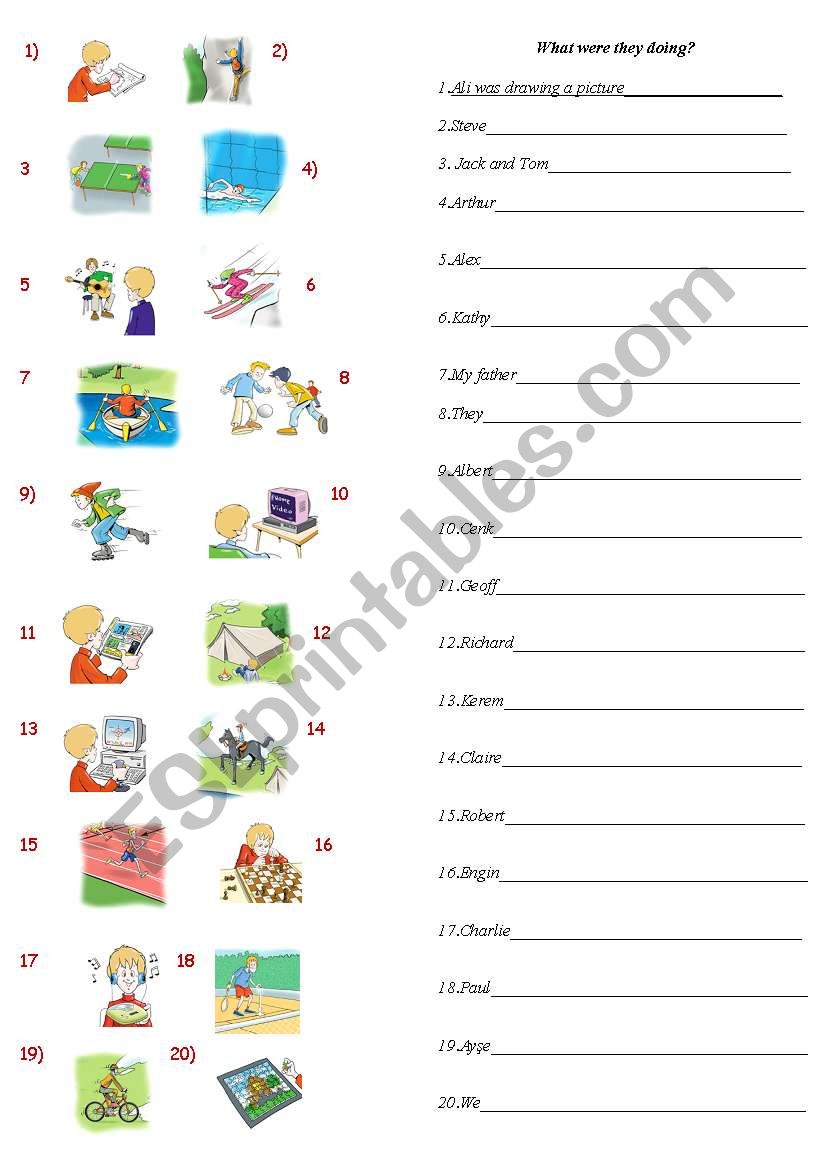 The students will write what people were doing on each picture. You can also use it for present cont.