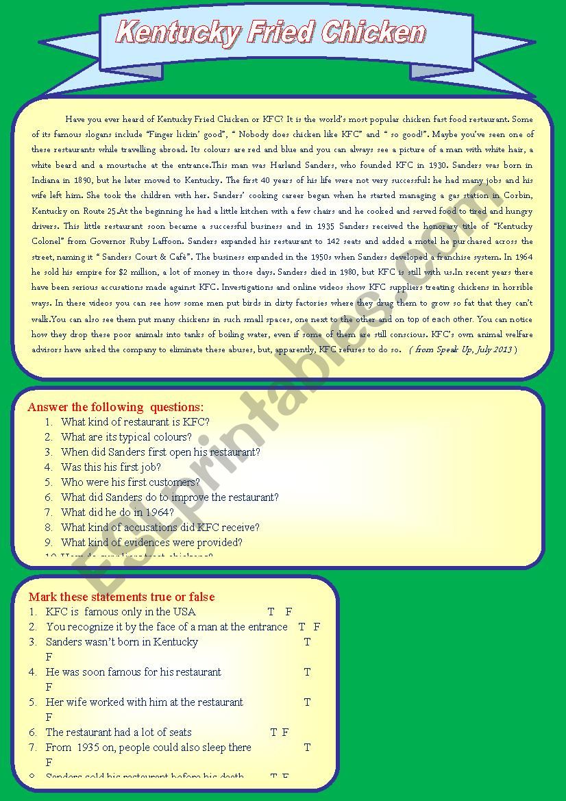 This reading is about a famous chain of fast food restaurants. Students read the text and then do the exercises.