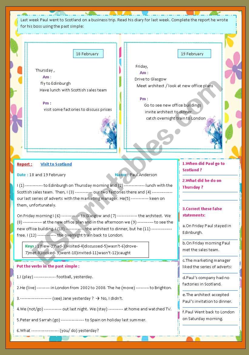 I taught this to my pupils last year: how to turn a diary into a report and put the verbs in the past form. It´s very simple and useful!!