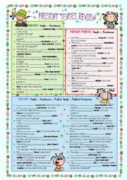 FOUR TENSES REVIEW -PRESENT SIMPLE- PRESENT CONTINUOUS-PAST SIMPLE AND PAST CONTINUOUS (B&W VERSION+ KEY INCLUDED) worksheet