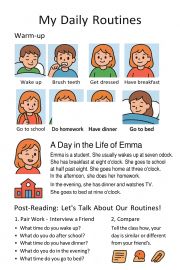 A simple worksheet for 7th form Tunisian students. Module 1, section 4 how do you spend your day