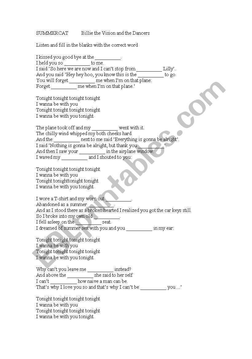This is a song that became very popular in Spain during the summer 2009, because it was the soundtrack for a TV commercial. The song was released by a Swedish group, Billie the Vision and the Dancers, and it tells the story of a summer love.