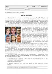 with this attractive material about David Beckham, students will be working on vocabulary and a true/false excersise. it will develop student´s reading skill about a famous person