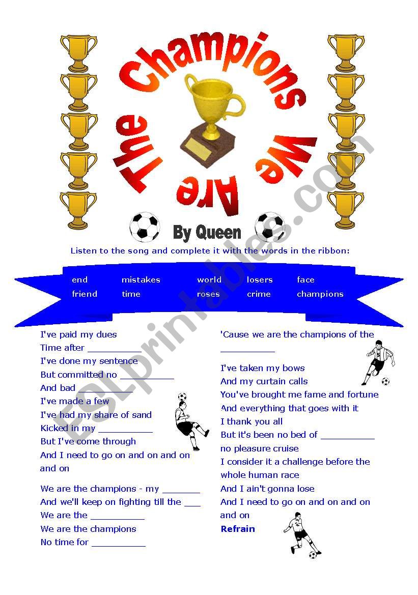 We Are The Champions - by Queen worksheet