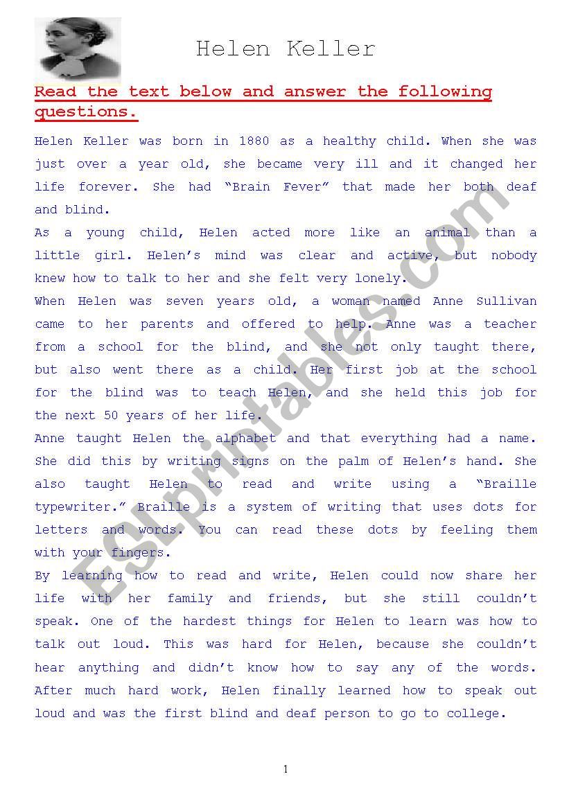 Reading worksheets > Biographies > Helen Keller > Helen Keller