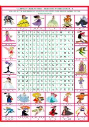 English Worksheet: Cartoon Characters - Heroines Wordsearch 4