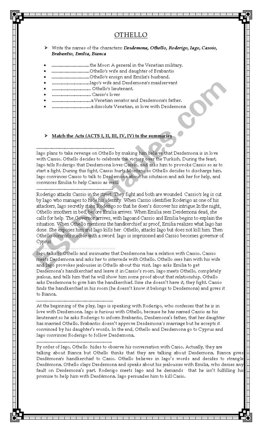 OTHELLO (WILLIAM SKAKESPEARE) worksheet