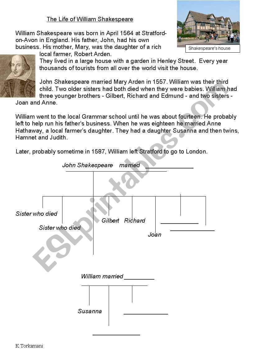 Reading worksheets > Classical literature > William Shakespeare > The Life of William Shakespeare
