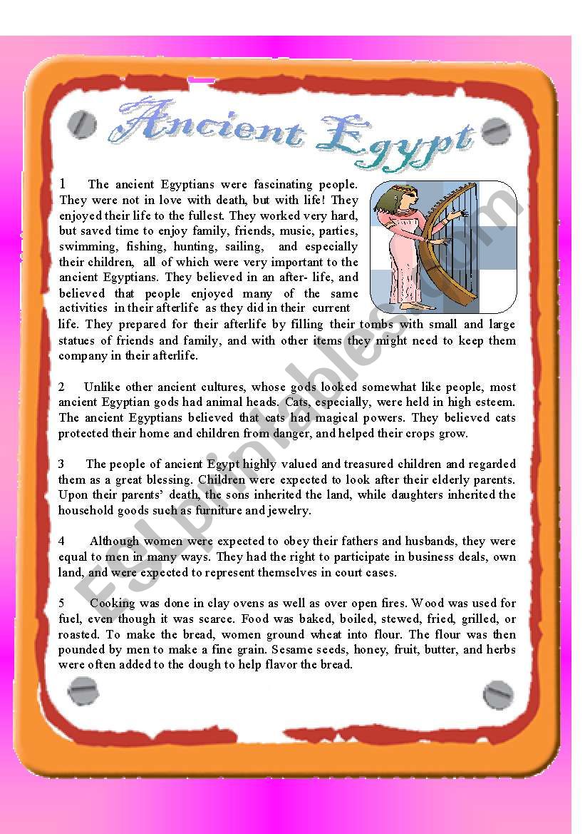 RC Ancient Egypt : beliefs and lifestyle + Comprhension questions and Answer Key