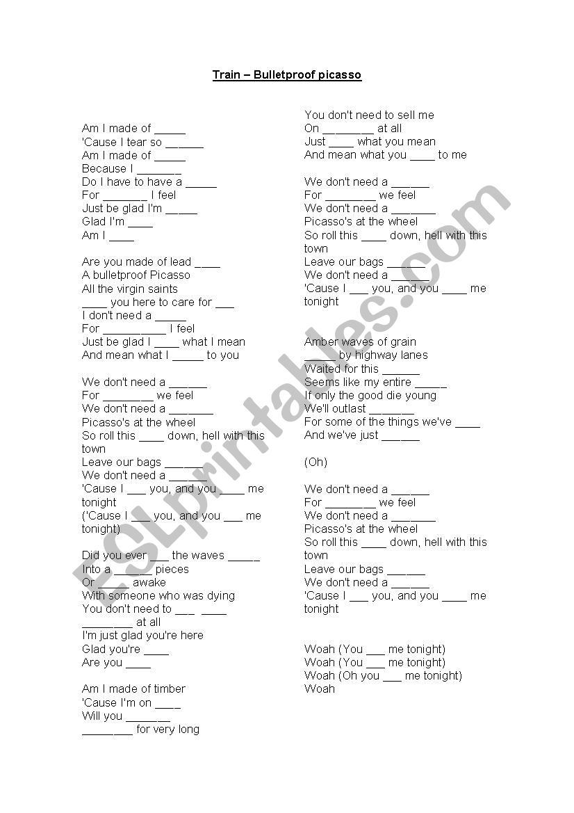 Reading worksheets > History > Picasso > Song Bulletproof picasso - Train