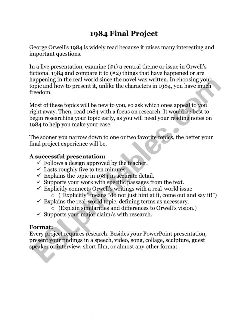 Reading worksheets > Literature > 1984 - George Orwell > 1984- Final Project