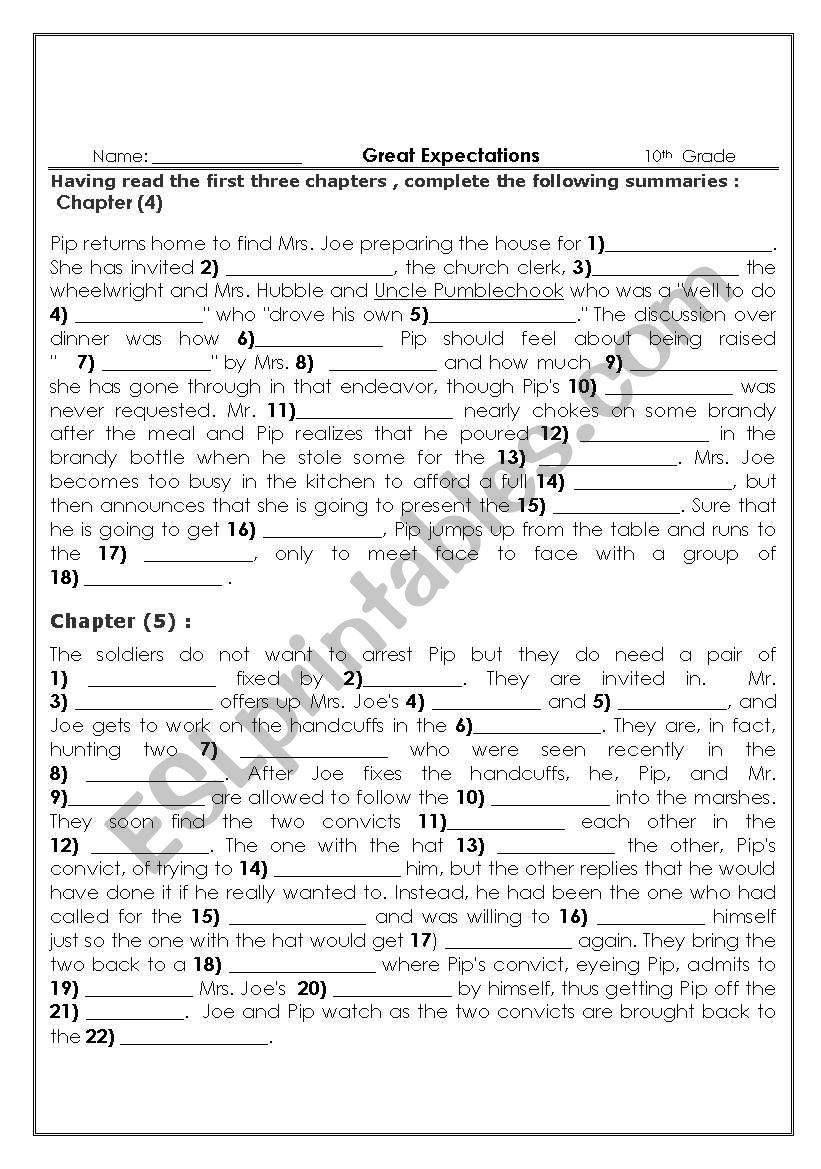 Great Expectations; cloze synopsis (fill in the blanks) pages 1-2