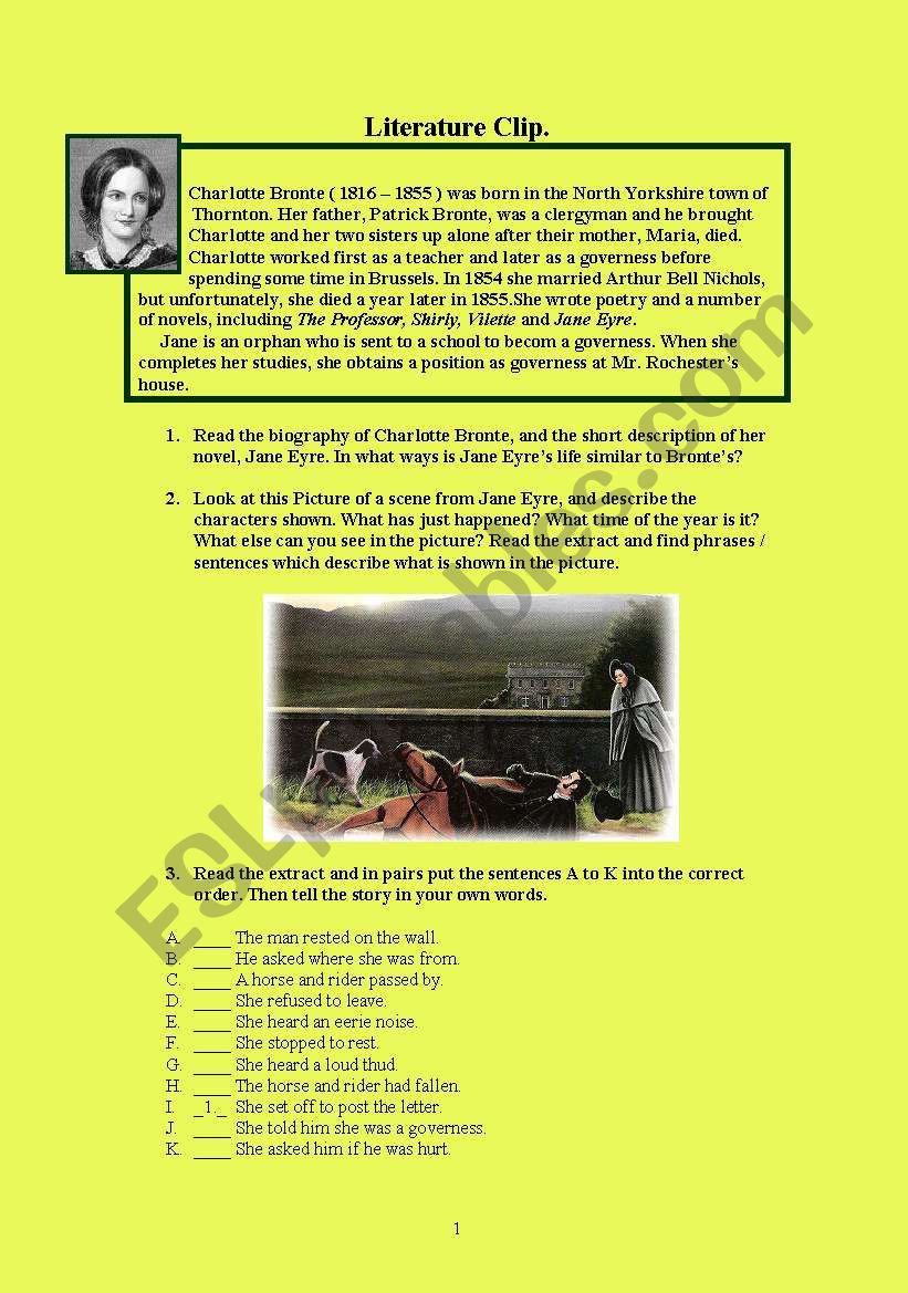Good reading skills improving. Charlotte Bronte and Jane Eyre. Speaking and pair work activities are included