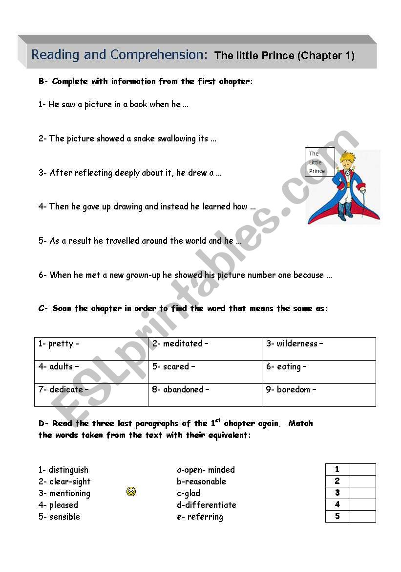 This is the 2nd page of the worksheet about the 1st chapter of the "The Little Prince". I hope you like it