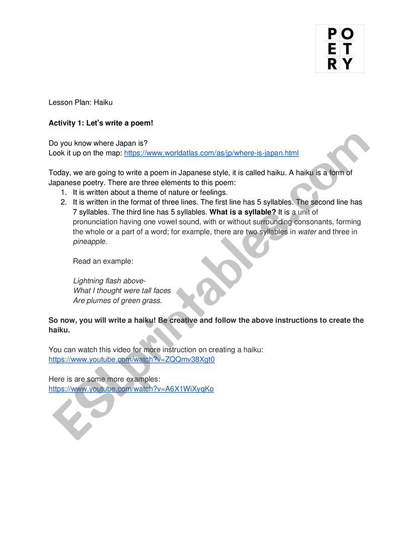 Mother´s Day Lesson Plan--Song and Haiku Writing!