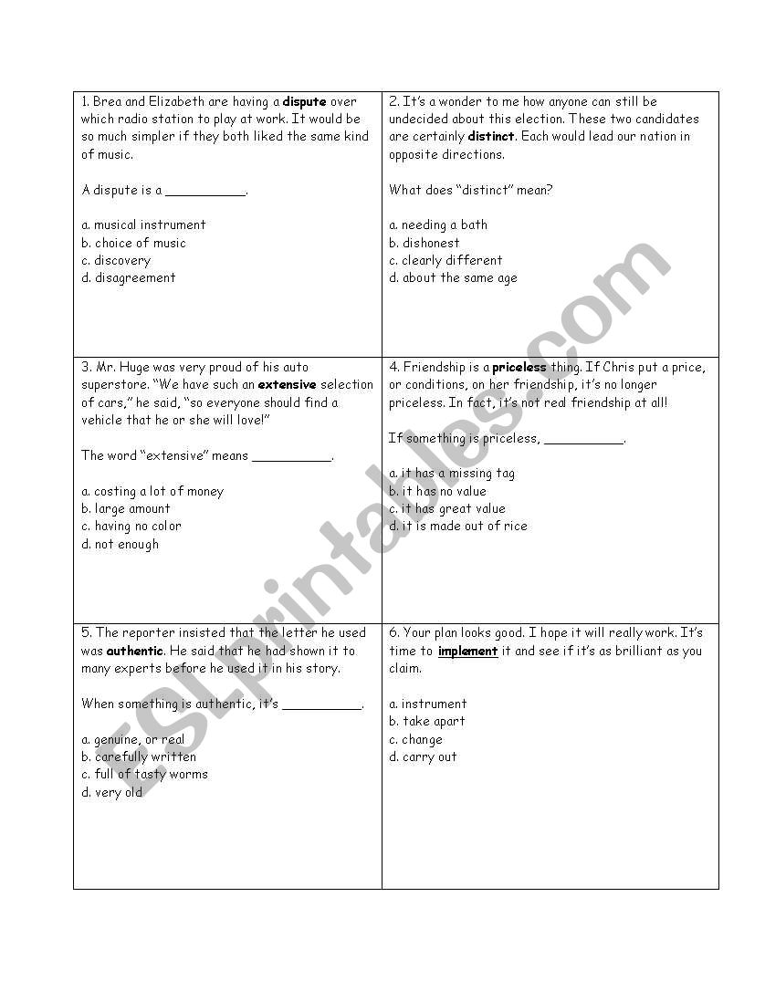 Reading worksheets > Reading comprehension > Context clues > Context Clues Card Game