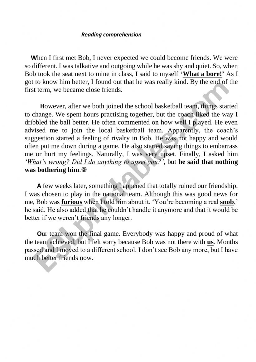 Reading worksheets > Reading comprehension > first form reading comprehension