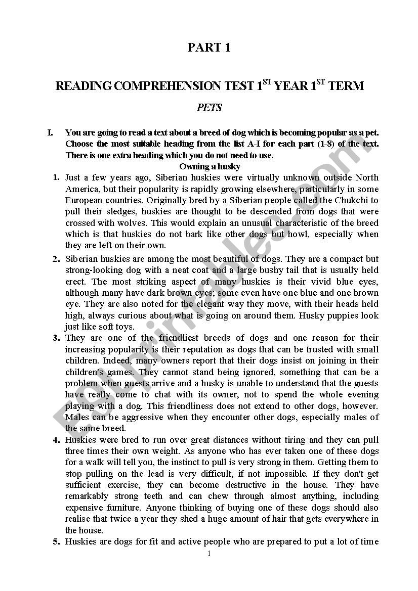 Reading worksheets > Reading comprehension > Reading comprehension test > Reading Comprehension Tests