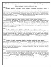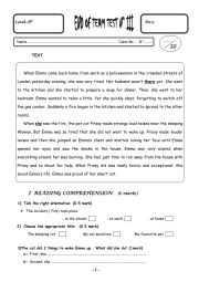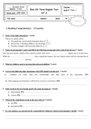an end of term test for 8th graders , composed of a Reading comprehension part , a language part and a writing part . Hope it helps