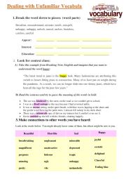 Use the worksheets to help you understand how to deal with unfamiliar vocabulary while reading. The material covers helpful tips, examples and illustrative context.