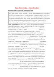 Super Bowl Sunday - Vocabulary Cloze
