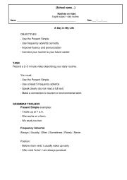 Students prepare the information to be recorded on video. They revise the present simple, the adverbs of frequency and vocabulary related to daily routines, school and chores.