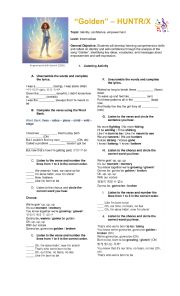 Song worksheet ?Golden? (HUNTR/X) about identity and confidence. Includes listening tasks, vocabulary, reflection activities, and ANSWER KEY.
